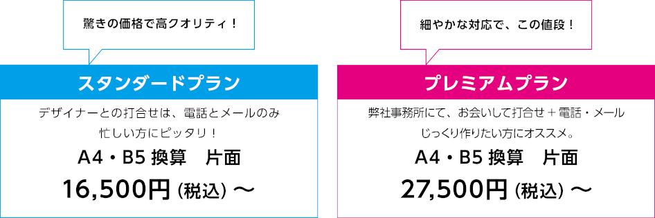 「スタンダードプラン」「プレミアムプラン」はいずれも制作するデザイナーは共通です。